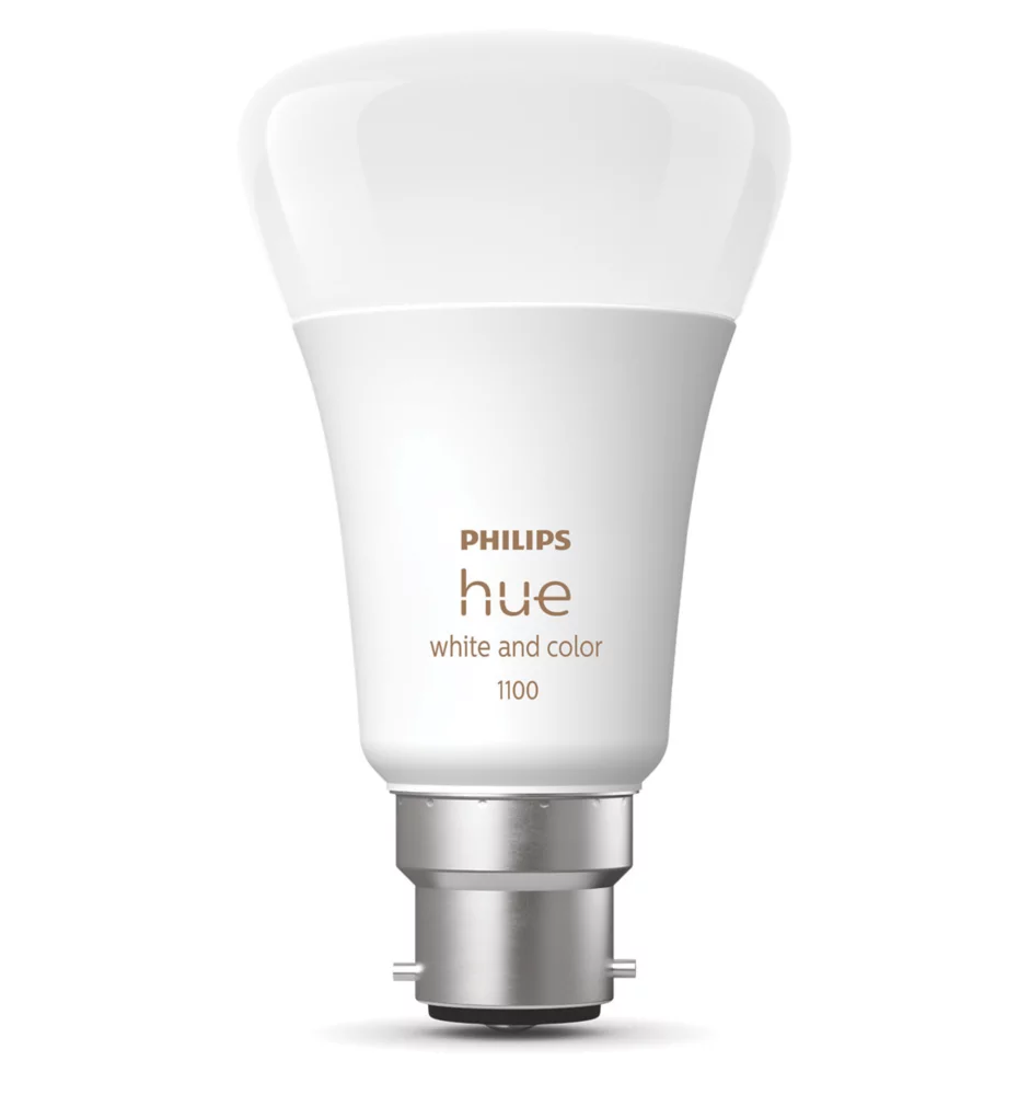 Numerous shades of white and coloured light, as well as instant dimming. Suitable for any standard fixture with a bayonet fitting.