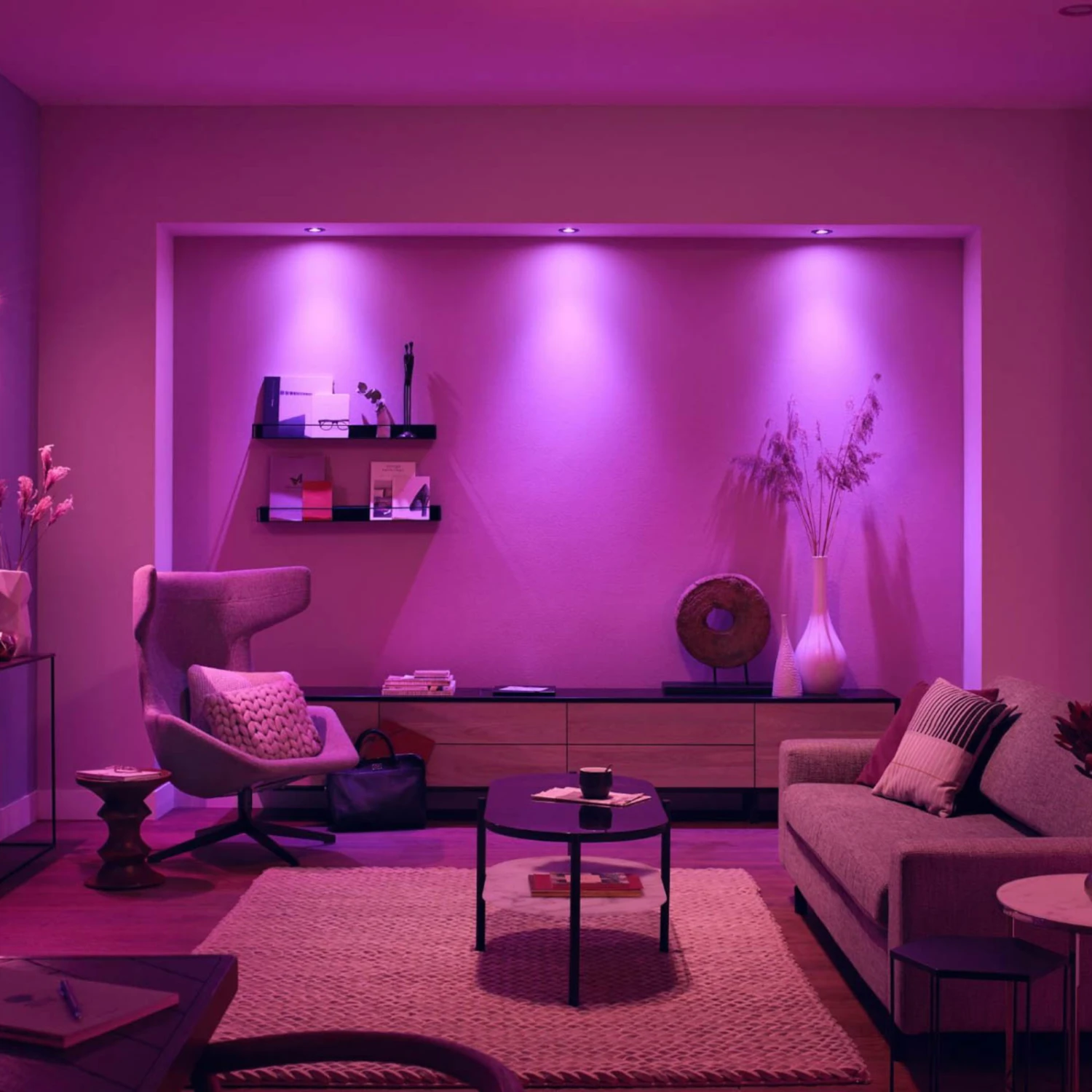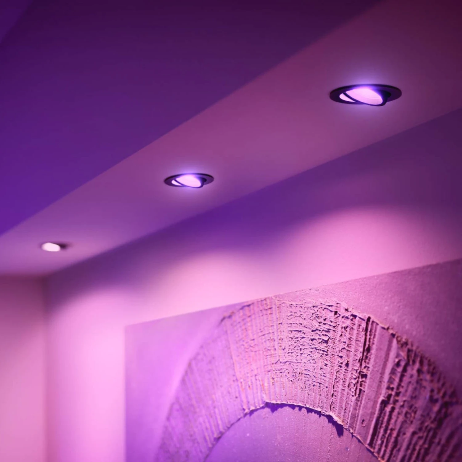Centura is a modern recessed spotlight made of a round plastic housing and equipped with a swiveling socket including Hue White and Color Ambiance LED bulbs. The practical 3-pack allows you to extend smartly controllable ambient or accent lighting in any shade of white or colour to different areas or rooms.