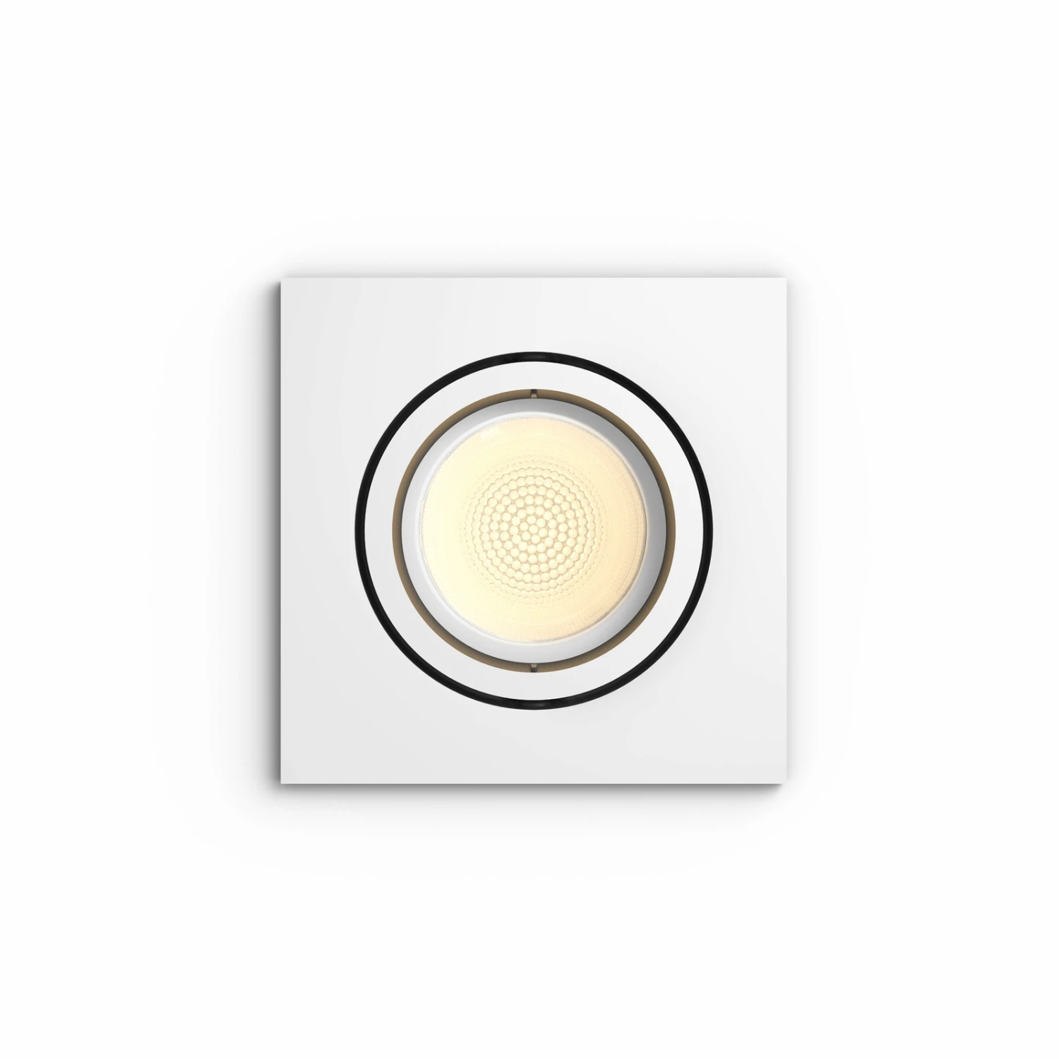 The Centura LED recessed ceiling spotlight from Philips consists of a sleek square frame made of plastic that encloses an adjustable light head. Centura is equipped with a replaceable GU10 lamp with Hue White and Color Ambiance technology, which gives the recessed spotlight a superior functionality.