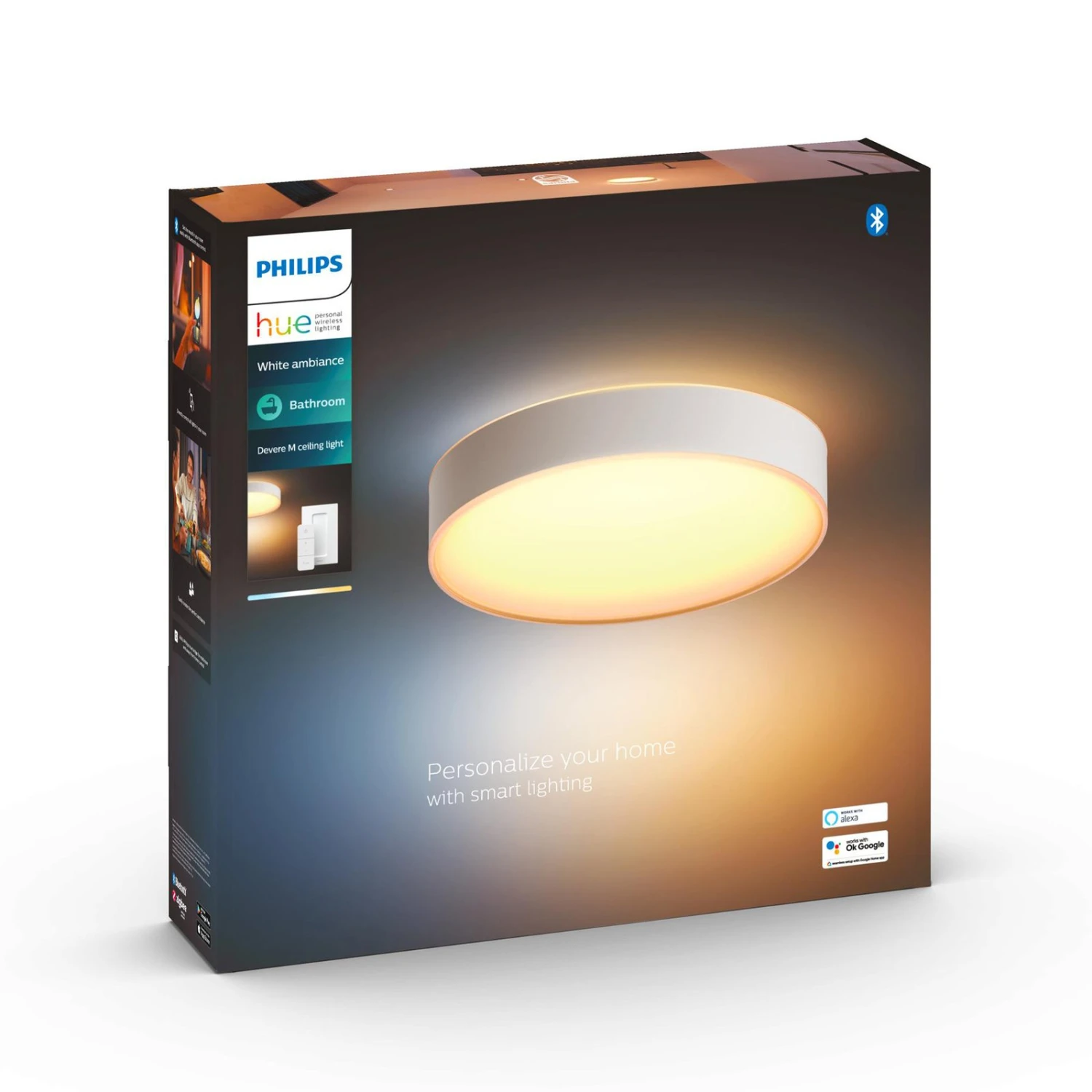 Smart controllable variable light for living rooms and bathrooms – Philips Hue LED ceiling light Devere, White Ambiance.