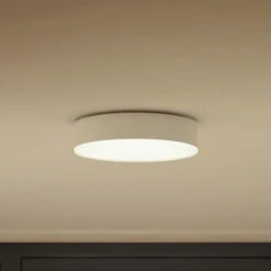 The round LED ceiling light Hue Enrave offers bright, large-area light. Whether living room, hallway or even sleeping area, Enrave offers adjustable brightness and white tones in the spectrum from warm white to daylight at any time of day the right light. Thanks to the included dimmer switch, the ceiling light can be directly switched on and off as well as dimmed. Alternatively, the light can also be controlled via Bluetooth with your own smartphone, without the need for additional devices. A smart integration into an existing Philips Hue smart home system via the Hue Bridge (see accessories) is also possible.
