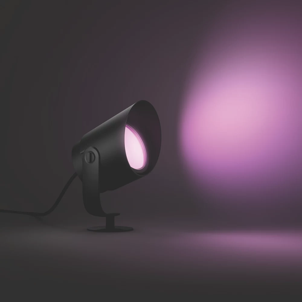 Powerful LED spotlight extension for the highlighting of large outdoor features. Operates by connecting to the Lily base kit or power supply unit (sold separately). Offers a range of 16 million colours for garden illumination. For smart control a Philips Hue Bridge is required (not supplied). Supplied with a detachable shield and 0.5m cable. IP65 rated.