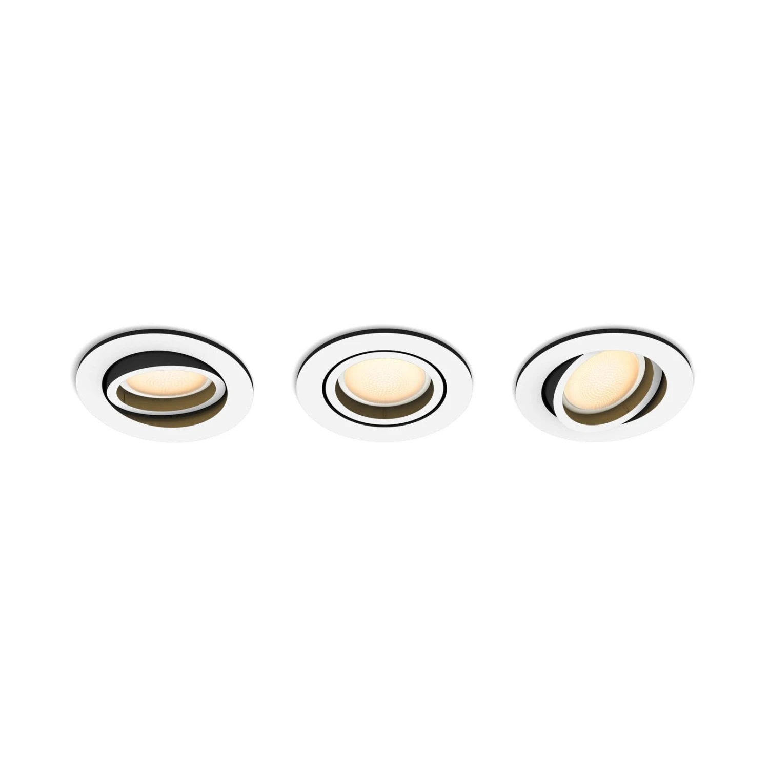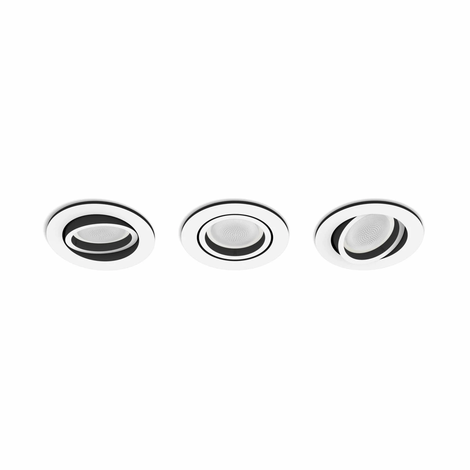 The modern, round LED recessed spot Milliskin from the Philips Hue product family is equipped with a smart controllable light source. This is located in an all-round swivelling lamp head and offers variable brightness and colour temperature.