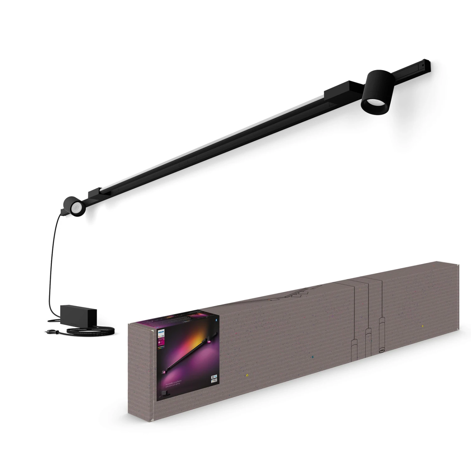 The complete system Perifo from Philips Hue is a rail system which is perfectly suitable for wall mounting. Included are 2 LED spots, a light strip with gradient technology, matching rails, a connector and a power supply with plug.