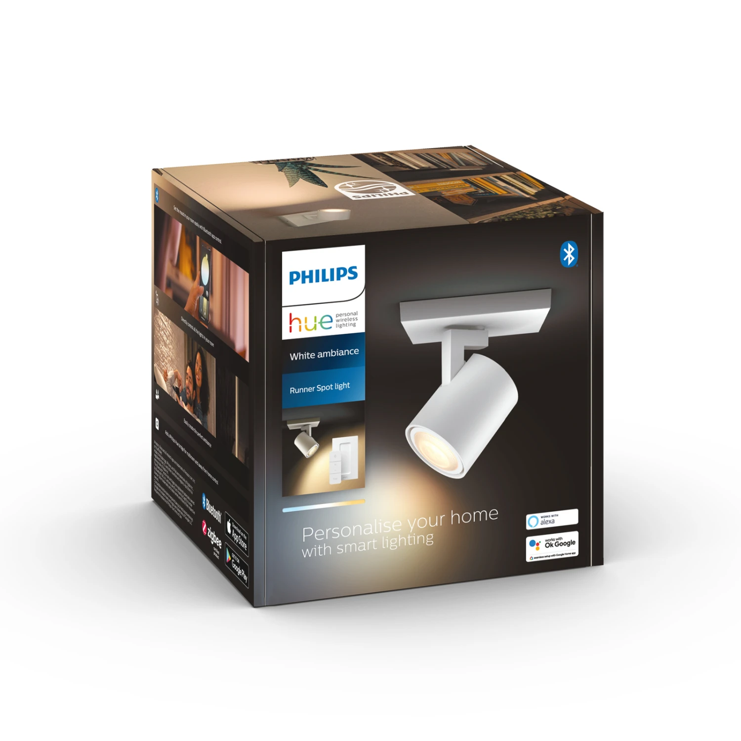 Whether for reading, handwork or writing, the Runner LED spotlight always creates the right ambience and an optimum lighting result, which it demonstrates perfectly thanks to its various light adjustment options and also thanks to the flexible luminaire head. There are two ways to control the spotlight individually or to individually determine the colour temperature and brightness of the White Ambiance GU10 LED light source supplied: Either one controls the luminaire without connection to a Hue system via the dimmer switch included in the scope of delivery or one connects the luminaire to an existing Hue Bridge and integrates it into a Smart Home system, which can then be controlled via the free Hue app. The Hue-Bridge is included in the accessories and is not included in the scope of delivery.