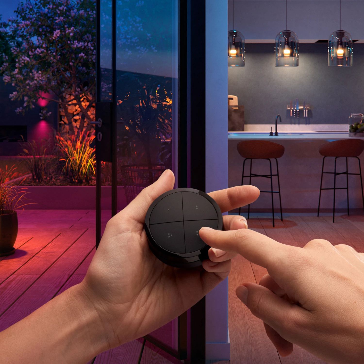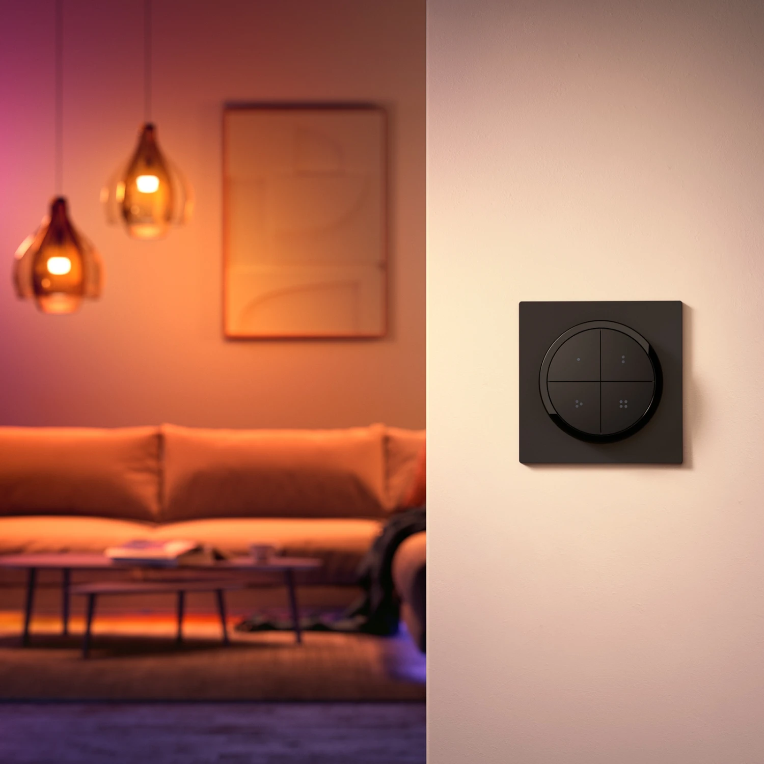 Practical Philips Hue Tap Dial switch can be used as a wall switch or remote control
