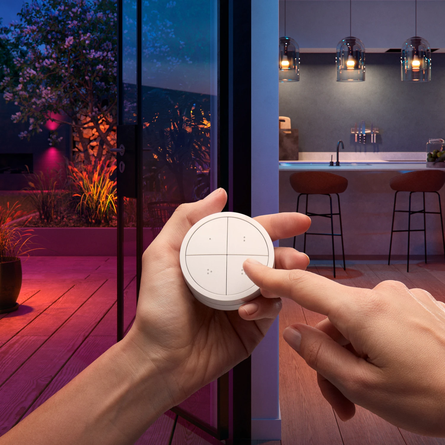 The Philips Hue Tap Dial switch serves as an accessory for the Hue lighting system. It can be used as a switch on the wall or also as a remote control and provides easy and understandable access to the Hue system. So everyone in the house can easily access and make settings of the light or control.