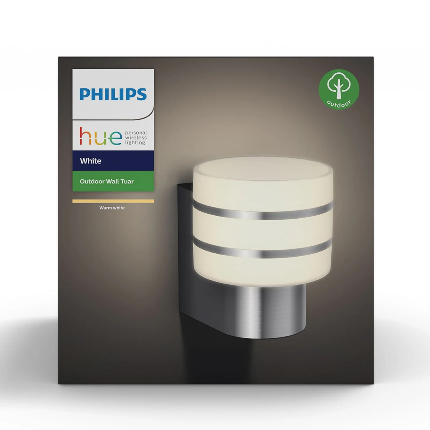 With a stylish stainless steel design – smart Tuar LED wall light by Philips Hue