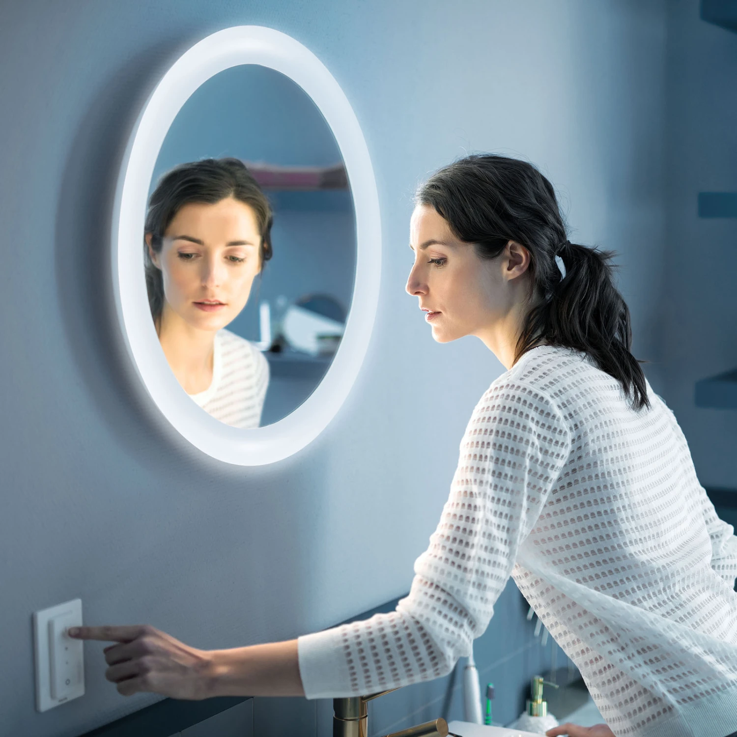 The perfect companion in the bathroom: controllable Philips Hue LED mirror Adore including Hue dimmer switch