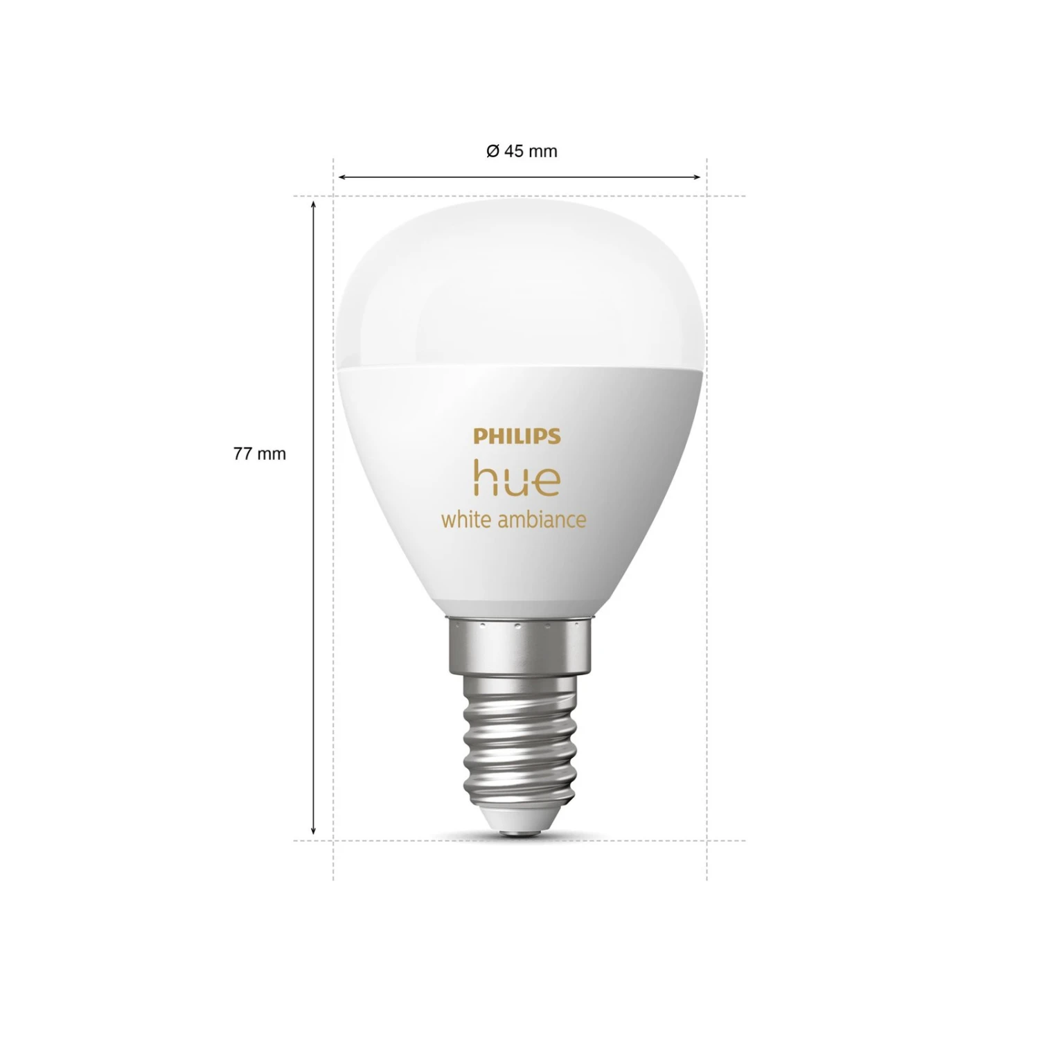 E14 5.1W LED drop lamp Philips Hue White Ambiance with CCT function, in a set of 2Whether you’re relaxing or watching TV, the smart lighting from Philips Hue makes everyday moments more beautiful and special. With the Philips Hue White Ambiance E14 lamp in drop shape, lamps and luminaires can be integrated into the smart Philips Hue lighting system. The drop-shaped lamp is about the size of a golf ball. Therefore, it also fits where longer E14 lamps cannot be used.To create the right mood for every moment, the lamp has over 50,000 shades of white. For relaxation with warm white light or with cool white light for extra focus at work. For instant light control, the lamp can be selected directly via Bluetooth. Alternatively, it is possible to pair it with the Hue Bridge control centre to enjoy the full functionality of the lighting system throughout the home and get more out of the smart lamps.Technical data:- White light colour temperature adjustable from warm white (2,200 K) to daylight (6.500 K)Features / Compatibility:- Controllable with the Hue dimmer switch (see accessories)- Controllable with matching Hue app and Hue Bluetooth app- Compatible with existing Philips Hue system and other ZigBee-based systems- Voice control possible with Amazon Alexa, Apple HomeKit (Siri) and Google Assistant- Dimmable via app, voice command and dimmer switch- Smart lighting control option a: ZigBee integration via bridge and router, such as the Philips Hue Bridge (see accessories); this enables control on site or on the move via Hue app (free for Android and iOS) or on site via voice command via Amazon Alexa, Apple HomeKit (Siri) and Google Assistant.- intelligent lighting control option b: Direct local control via Bluetooth using the free Hue Bluetooth app; this requires a smartphone or tablet that uses Android 7 or iOS 11 or higher and Bluetooth Low Energy (BLE) 4.0 or higher. A router, Wi-Fi or data connection is not required.When using more than ten lamps, the use of a bridge is recommended. A lamp can store connections with up to 15 smartphones/tablets; the individual settings are assigned individually.