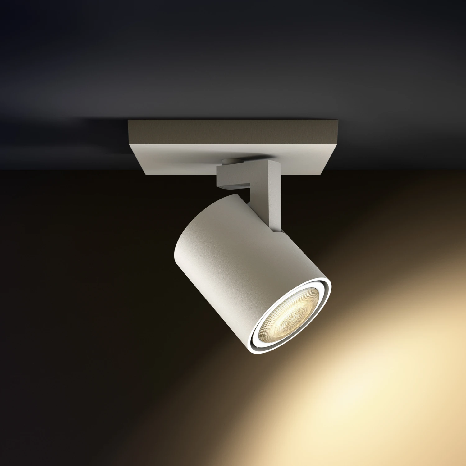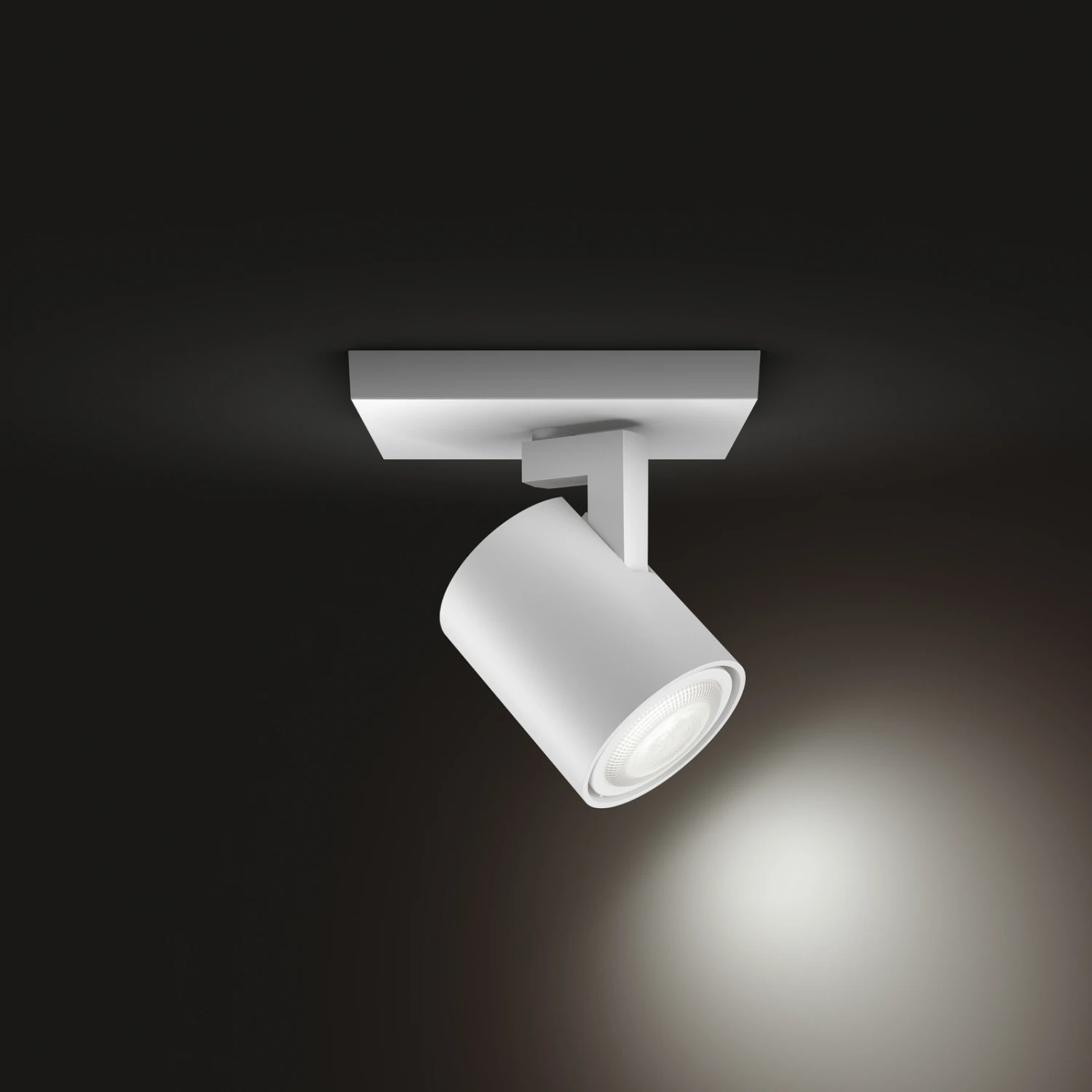 Runner is a modern LED spotlight with innovative ZigBee-standard light sources that can be integrated into an existing smart home system. The already included Hue White Ambiance GU10 LED illuminant can also be adjusted in the light temperature, so that the light colour and also the brightness can be determined as desired. The Hue app, which is available free of charge from the App Store, can be used to create different lighting scenarios, such as sunrises and sunsets, in addition to the light setting options already mentioned, so that there are no limits to the setting options. Due to the permanent connection to the Hue-Bridge, which must be purchased separately and is necessary for connection to a Hue system, the light is in constant contact with the WLAN router, so that the light can be operated from anywhere in the world.