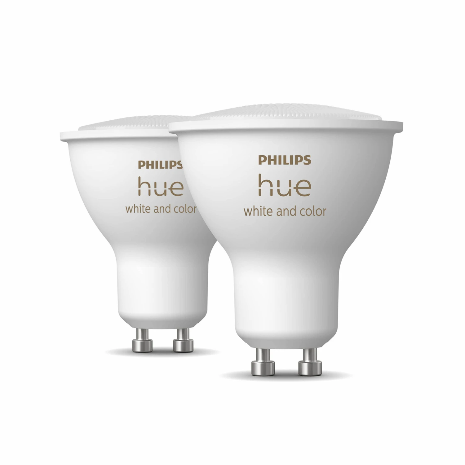 Bluetooth and ZigBee compatible Philips Hue White and Color Ambiance GU10 LED lamp in a double pack