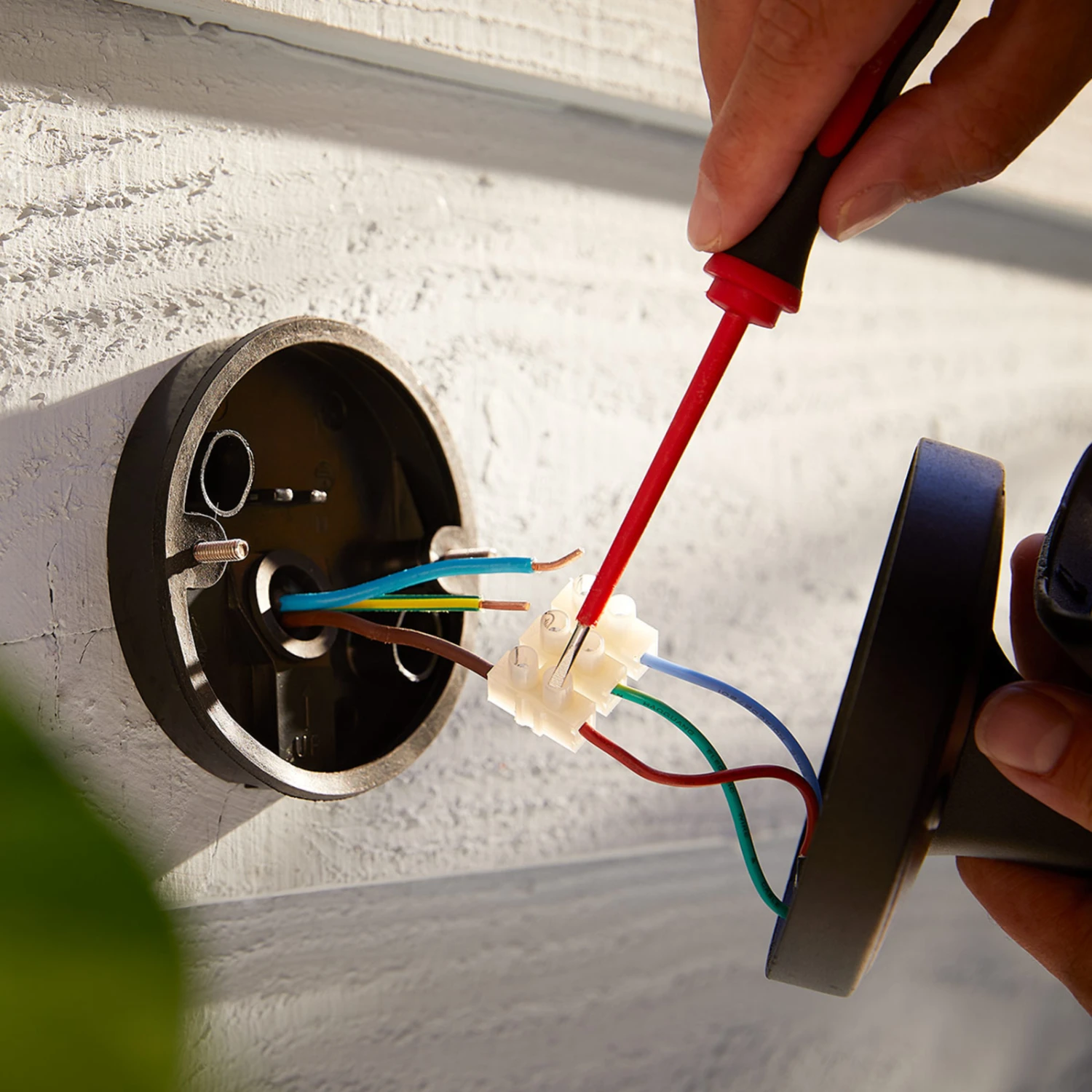 Please note: for the smooth functioning of the Hue outdoor lighting, the first outdoor light should be max. 10 m from the bridge, which is located inside, or a Hue lamp. All additional lights must be installed at an interval of max. 20 m. However, the smaller the interval, the better.