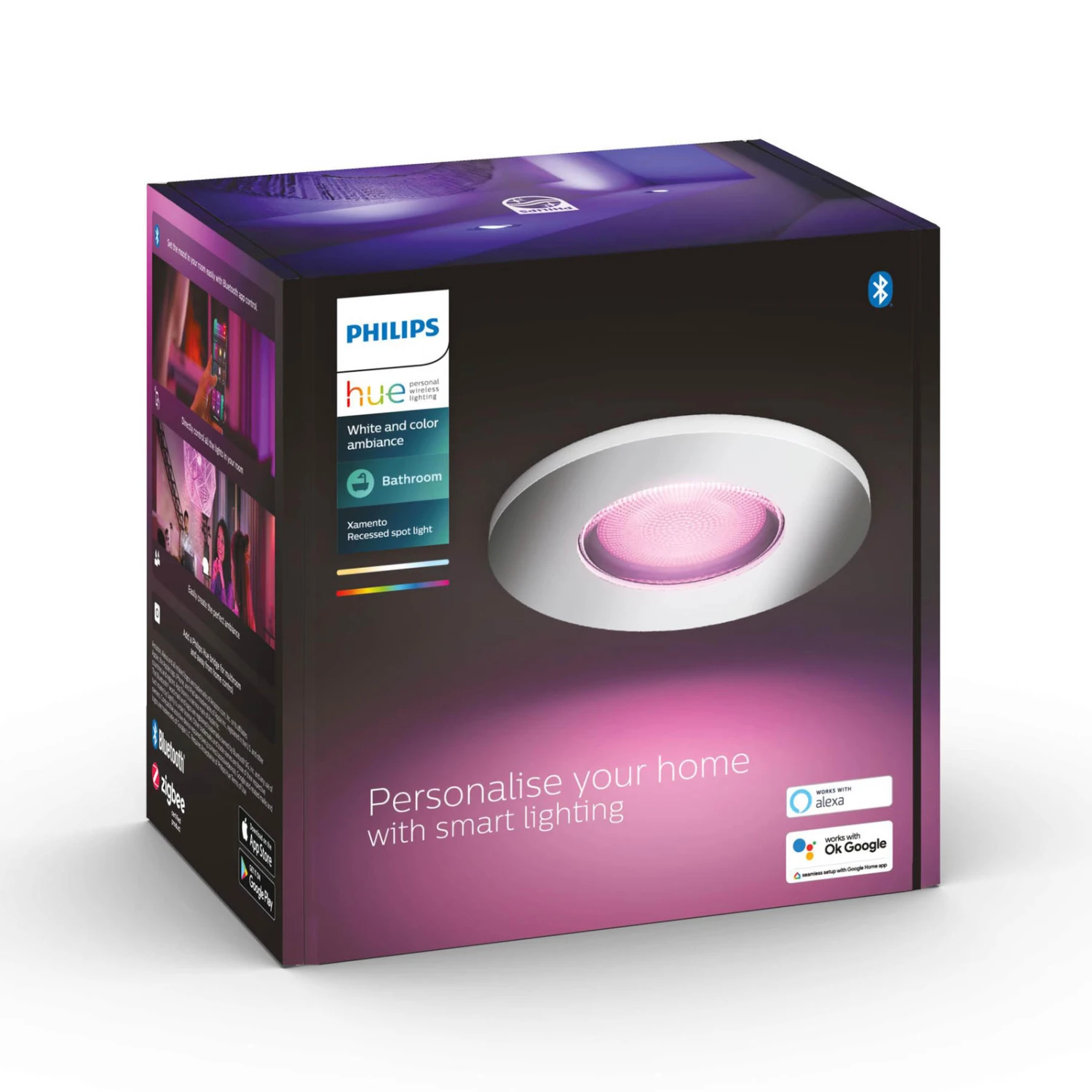 Philips Hue LED recessed spotlight Xamento – coloured and white light, smart controllable, IP44